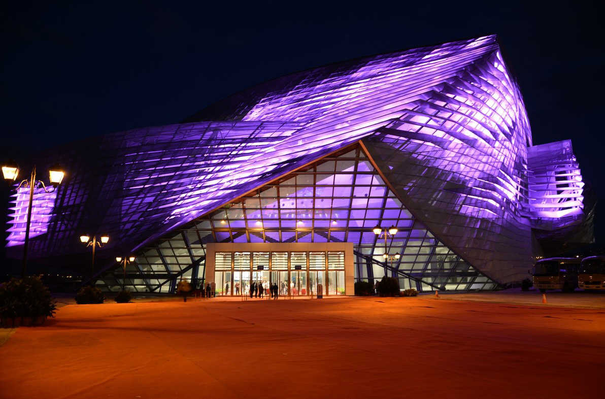 大连国际会议中心坐落在大连东港商务区、CBD核心区,背山面海,天然港湾。“山海”主题贯穿了整个建筑设计,以“海”文化为中心,采用海元素的照明设计手法,融合传统的中国文化,用灯光创造了一个完美的艺术文化空间。夜幕下的大连国际会议中心在蓝色灯光的衬托下美轮美奂,流光溢彩,其动感、飘逸、行云流水般的建筑形态,回应着大海的召唤,展示着开放包容的城市性格,集雄伟、精美、时尚、和谐、大气和人性化为一体。