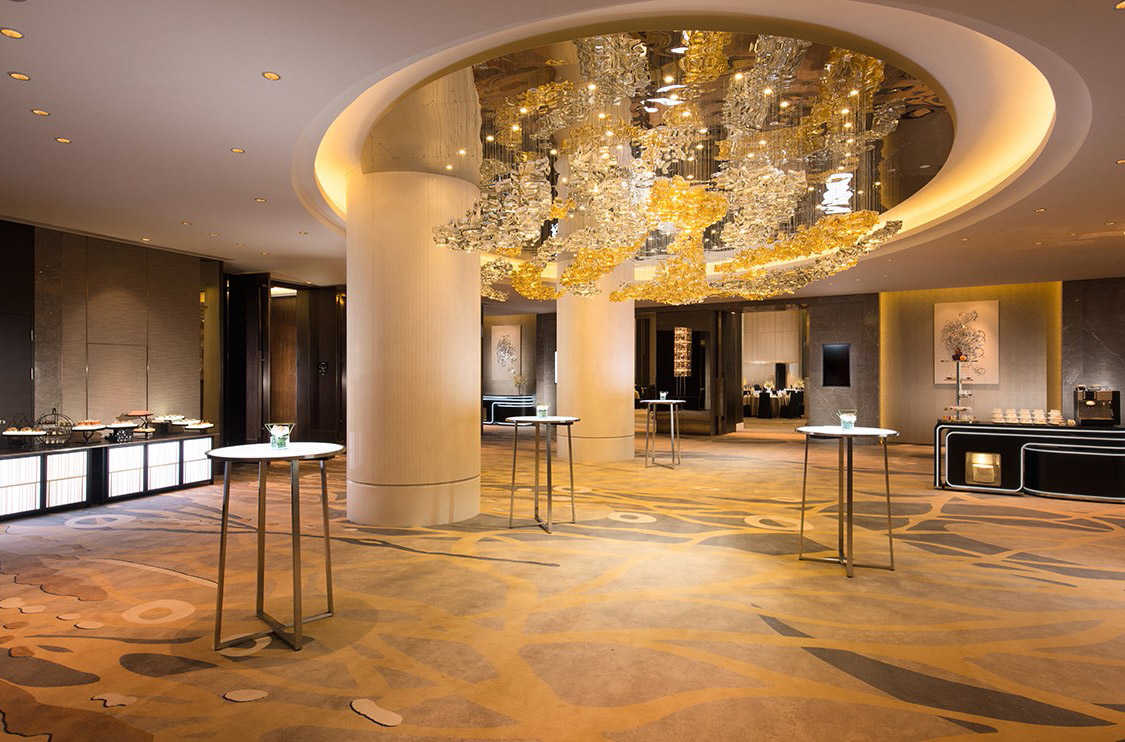 在中国东海岸,酒店坐落在400座群岛中之一,普陀山成为了这座酒店独特的布景。酒店的室内设计灵感也是源自于周围的景色,通过流动的形状,地毯的图案,吊灯的形式包括布料的质地来演绎。