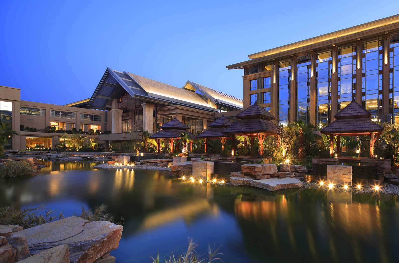 昆明洲际酒店坐落于“高原明珠”滇池之畔,酒店宁静而不失奢华,体现了优雅装饰与现代科技的完美结合,引人注目。酒店的设计主厅蝴蝶,在灯光的映衬下,七彩斑斓的翅膀也如同云南的七彩浮云,绚丽多彩,富有灵动感。大堂走道的照明设计显示出高阔的气派,重点照明令充满特色的装饰更加精致古典,酒店客房合理的灯光设计也能帮助旅客获得安静舒适的休息时光。